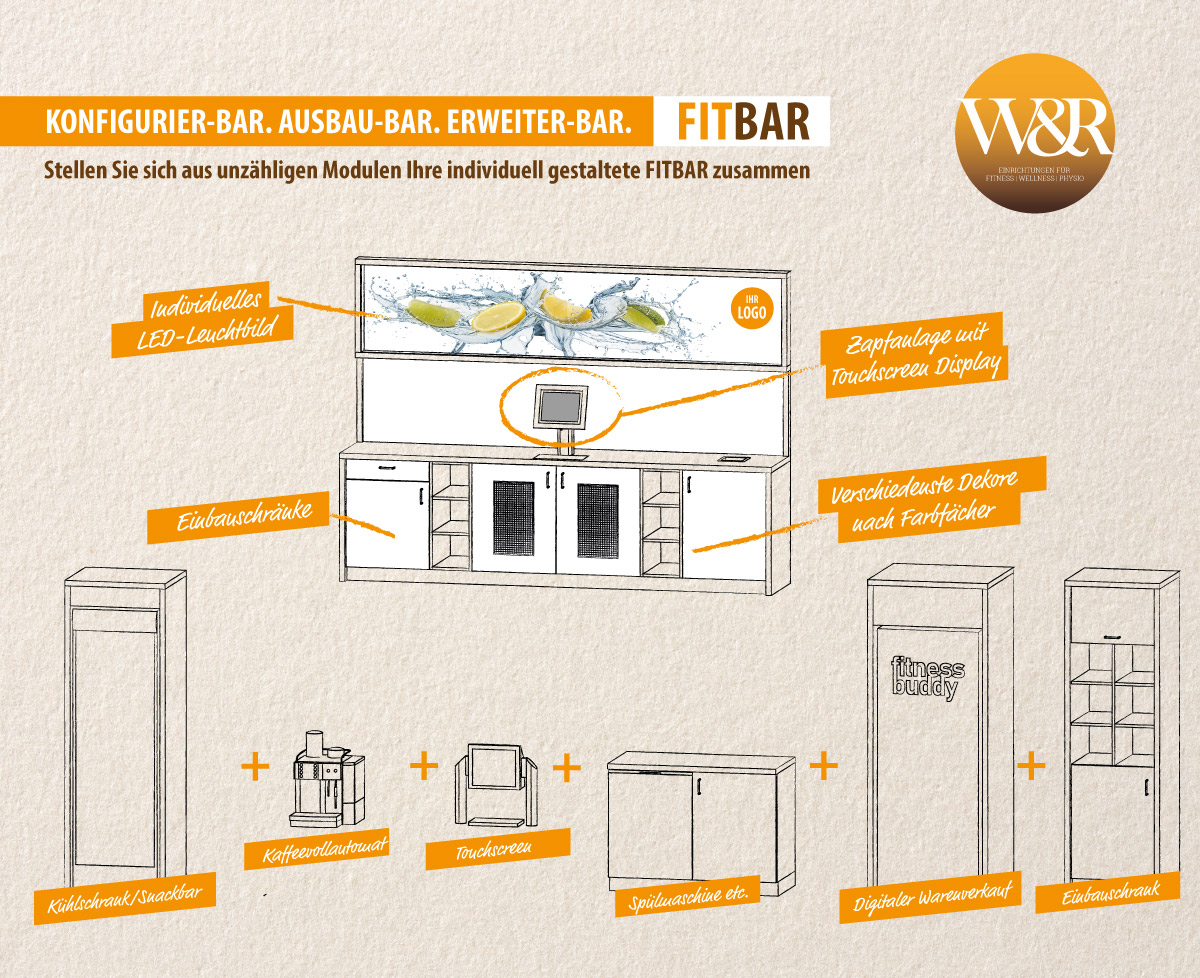 Theken, Lounge- und Sitzbereiche, Umkleidebereiche Raumteiler und Displays für Warenpräsentationen Studio- und Funktionsräume, Verspiegelungen aller Art, Trainerpoints und und und …